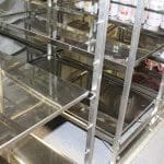 Anschließend konnte die Produktionsstätte besichtigt werden. Die Führung wurde so durchgeführt, wie der normale Prozess ist: von der Warenlieferung, Warenveräumung, erste Vorbereitung der Lebensmittel, über kalte Küche, warme Küche, Schockkühler, Kühllager, Kommissionierung, Warenausgang, Spülküche. Zum Schluss noch einen Ausflug ins Trockenlager.