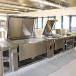 Bereits vor der eigentlichen Pressekonferenz war schon sehr viel los. Der NDR sowie RTL Nord filmten und interviewten Mitarbeiter; Steffen Henssler, unser Schirmherr, besichtigte die Küche zusammen mit Geschäftsführer Kai Gosslar und dem Küchenplaner Herrn Meissner. Auf der sehr gut besuchten Pressekonferenz berichtete Hr. Gosslar über den Weg von der Idee bis zur Entstehung von Lecker hoch drei und über die Zielsetzungen: Der Betrieb wird ungefähr 50 neue Arbeitsplätze für Menschen mit Behinderung schaffen. Die Arbeitslosigkeit bei dieser Zielgruppe liegt bei 12 %. Gleichzeitig ist es wichtig, den Kindern in Kitas gesundes und leckeres Essen anzubieten, da in diesem Lebensabschnitt Ernährungsgewohnheiten geprägt werden. Durch den Einsatz des Cook&Chill Verfahrens bleiben wichtige Nährstoffe erhalten, das Gemüse bleibt knackig und behält seine Farbe. Bei Lecker hoch drei hat Hygiene eine wichtige Priorität, alle Mitarbeiter müssen durch eine Hygieneschleuse. Wie hamburg work insgesamt setzt auch Lecker hoch drei auf Nachhaltigkeit. In der Küche wird z. B. sehr viel Energie verbraucht, Lecker hoch drei bezieht dafür Ökostrom.