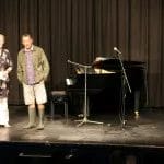 Ein anderer Poetry Slammer, Lennart Hamann (leider auch ohne Foto), eröffnete den zweiten Teil der Vorstellung als (unsportlicher) "Bankdrücker". Danach der Liedermacher Fayzen, der Zauberer Thomas mit verblüffenden Eindrücken über "Seilartistik" und – last but not least – plattdütsche Döntjes von Gerd Spiekermann, der uns die Freuden von Wurzeleintöpfen und grünen Bohnen näher brachte – alles muss aufgegessen werden!