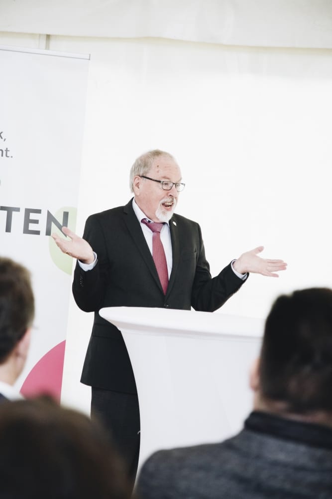Der Vorsitzende der Heide-Werkstätten, Thomas Lasthaus, wie auch der Geschäftsführer Bernhard Neuhausen, gingen in ihrer Rede auf die gute Zusammenarbeit mit Lecker hoch drei bezüglich des Betriebsaufbaues ein und freuten sich auf den Ausbau der Partnerschaft.