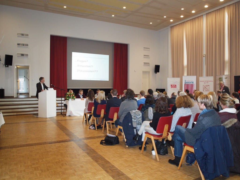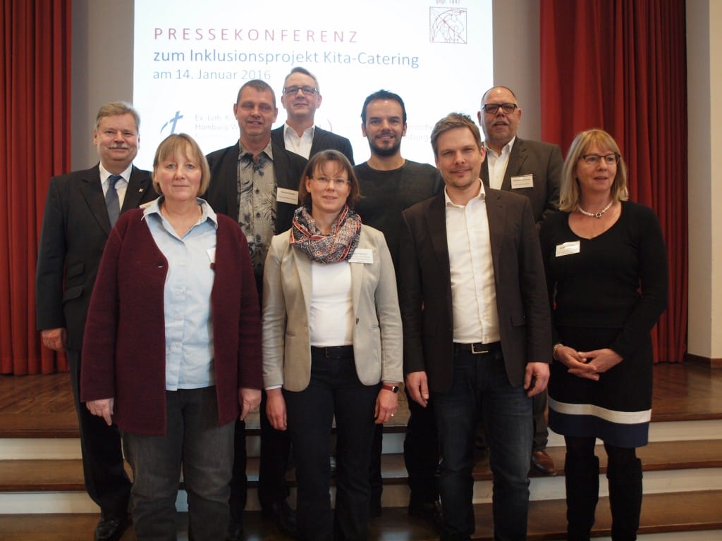 Auf einer von Vertretern der Medien und von interessierten Kitas gut besuchten Pressekonferenz am 14.01. im Gemeindesaal der Michaelis-Kirche haben Kai Gosslar, der Geschäftsführer von hamburg work und unser Schirmherr Steffen Henssler das Projekt einer breiten Öffentlichkeit vorgestellt. Steffen Henssler erklärte, warum er sich auch aus persönlicher Erfahrung für das neue Arbeitsfeld einsetzt: Hier soll gesundes Essen für Kinder in Kitas ökologisch und nachhaltig produziert werden und es entstehen dabei dringend gebrauchte neue Arbeitsplätze für Menschen mit einer schweren Behinderung. Der Vertreter des Integrationsamtes unterstrich, wie wichtig es ist, mehr Arbeitsplätze am ersten Arbeitsmarkt für diesen Personenkreis zu schaffen und lobte ausdrücklich die bisherige gute Zusammenarbeit.