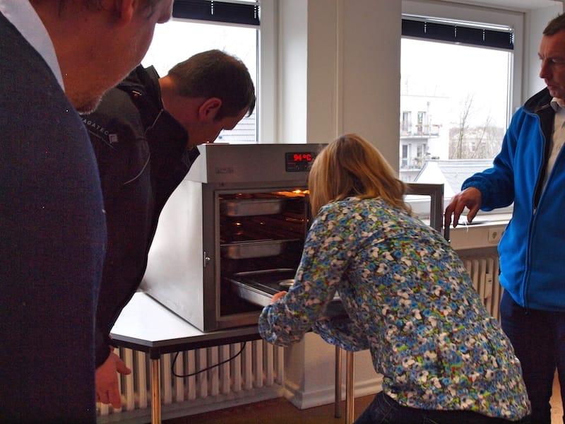 Herr Deuerling (Geschäftsführer HAGATEC) und Herr Jänecke (Rieber GmbH & Co. KG) führten am 18.03.2016 das Verfahren zum Regenerieren von Speisen im „Navioven“ den Hauswirtschaftskräften der Pestalozzi-Stiftung Hamburg vor. Nach einer Einführung in die Theorie wurden drei Speisekomponenten im „Navioven“ regeneriert und anschließend verkostet. Während der Verkostung beantworteten Herr Deuerling und Herr Jänecke aufkommende Fragen sowie Befürchtungen im Umgang mit dem neuen Verfahren.