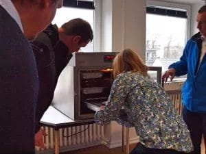 Wir arbeiten nach dem Cook&Chill-Verfahren. Das Essen wir dabei vor dem endgültigen Gar-Punkt innerhalb von 90 Minuten auf 3 Grad runter gekühlt. Das Essen wird dann erst kurz vor dem Verzehr in der Kita wieder erhitzt. Auf diese Weise bleiben mehr Nährstoffe im Essen als bei der Warmanlieferung und das Essen schmeckt und sieht wie frischer gekocht aus. In den meisten Kitas müssen hierzu Konvektomaten (Öfen) angeschafft werden. Diese Geräte können ohne umfangreiche haustechnische Vorbereitung eingesetzt werden, die ausschließlich eine Stromzufuhr durch eine Haushaltssteckdose benötigen.